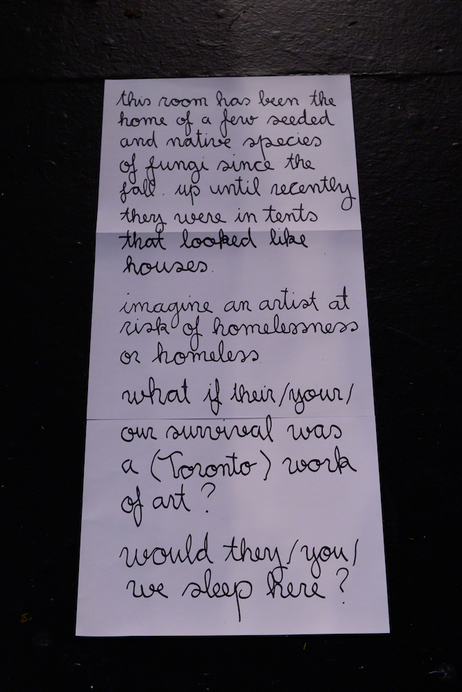 i am sitting in the room adjacent to the installation room, speaking on a phone zoom conversation with collaborator Serena McCarroll. we address our human decay after our recent housing crises and the insights in there. i am personally and politically grateful that, by inviting us, Rhubarb's artistic director, Clayton Lee, together with Rhubarb's staff, have chosen to see our artists' basic needs for survival as art. this is not obvious. in parallel, i wonder about the privilege that one must generally live in or with to be an active artist in Toronto.