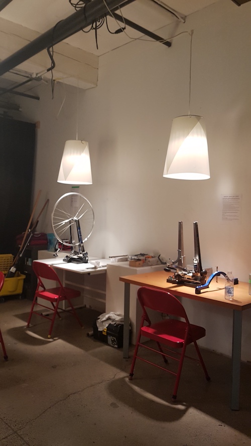 future (through systemic advocacy). when pulled to attend to the materiality of survival (body, income, food, housing) and to resist systemic oppression (as people living with disabilities have to do), one needs a long-term safe community open to the urgency. the art then is being in the urgency, not about it, and the aesthetic reduces to the ethic. thank you to all the workers who dropped-in: Leena Raudvee, Edward Bacal, Jerry Miller, Fabian Mosquera, Simla Civelek, Max Ferguson, Danielle Hyde, Adam Herst, Alan Beatie, Natasha Bacchus aka Courage, Gaitrie Persaud, Tristan Whiston and Heather von Atzigen. thank you to the organizing, supporting and hosting organizations: 7a-11d International Performance Art Festival, Tangled Art + Disability, bikechain, Switchback Cyclery, and Urbane Cyclist Worker Co-op |